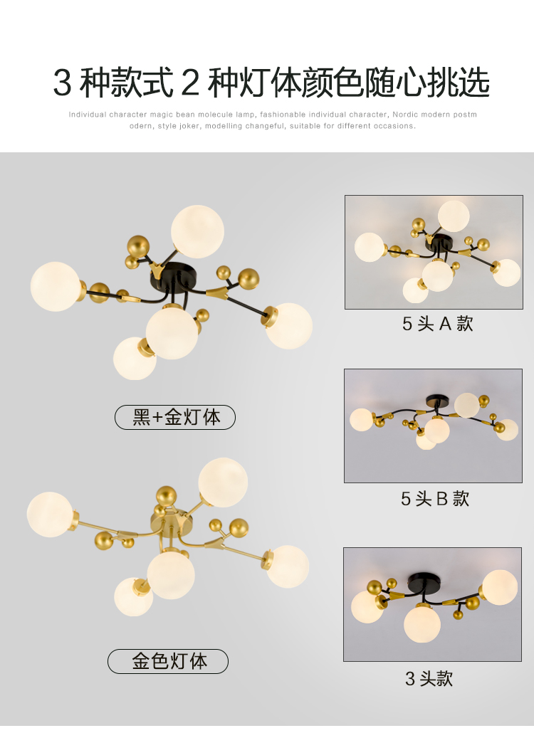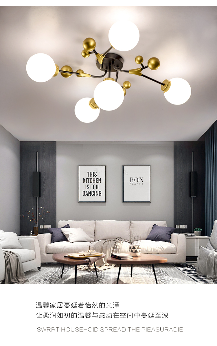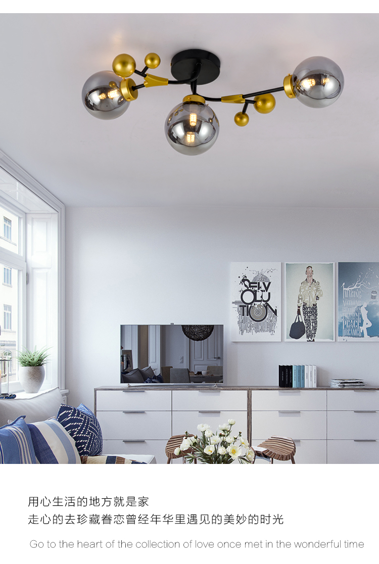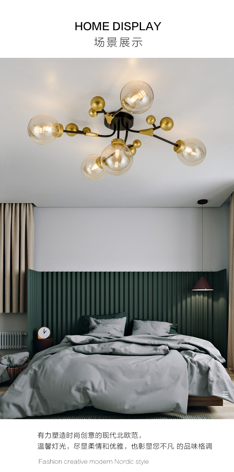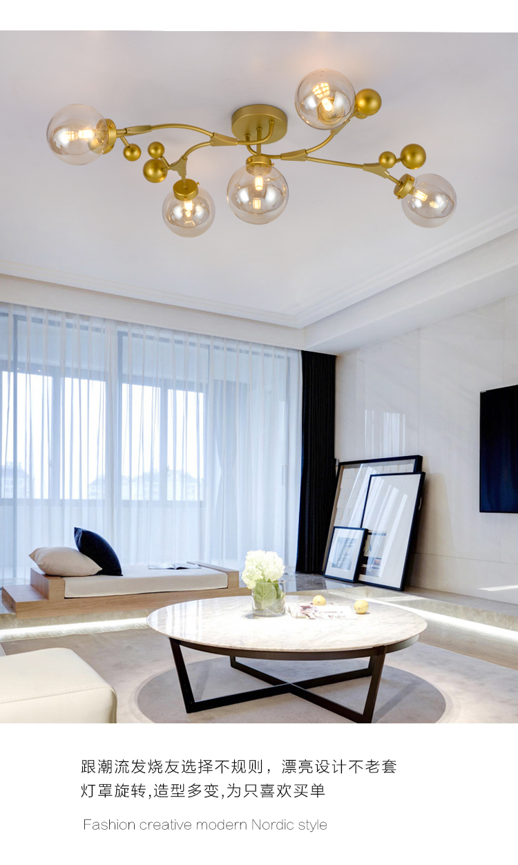 北欧轻奢温馨浪漫主卧室房间吸顶灯工业风客厅餐厅魔豆灯2019新款