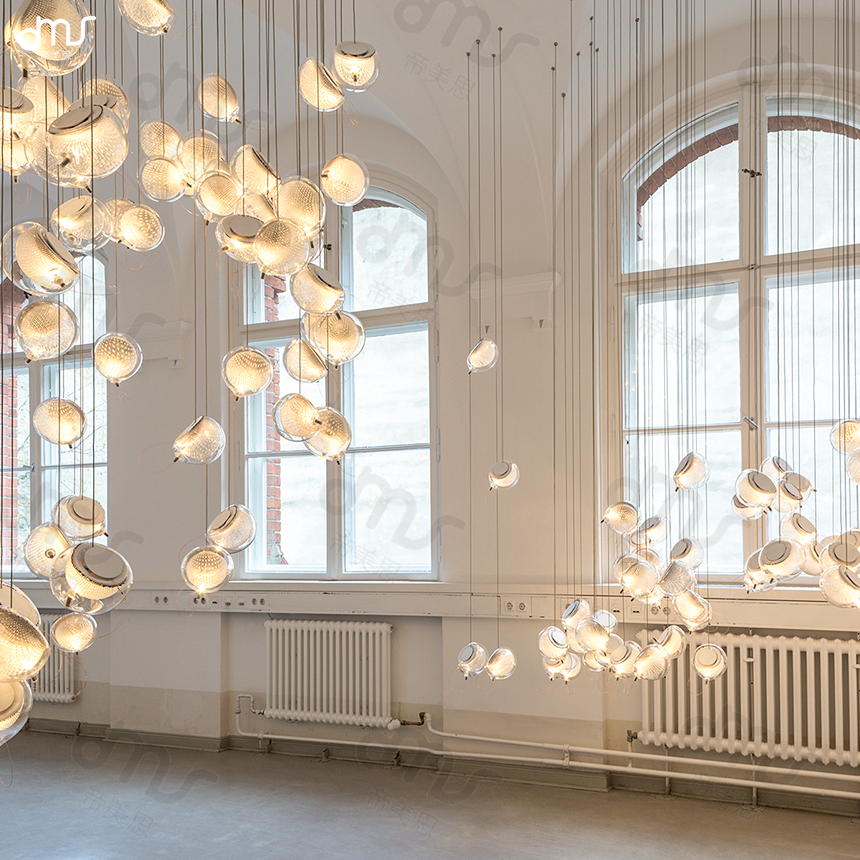 帝美斯复式楼楼梯灯后现代个性玻璃吊灯设计师新款简约水晶吊灯