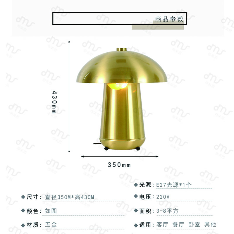 北欧后现代台灯个性简约客厅灯金属卧室书房软装样板房蘑菇头台灯