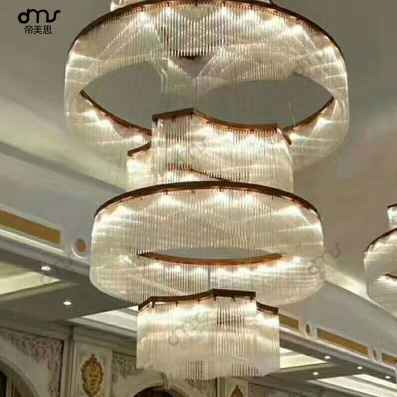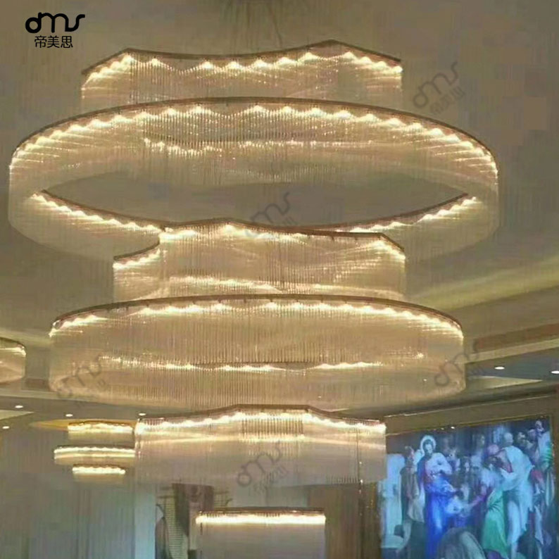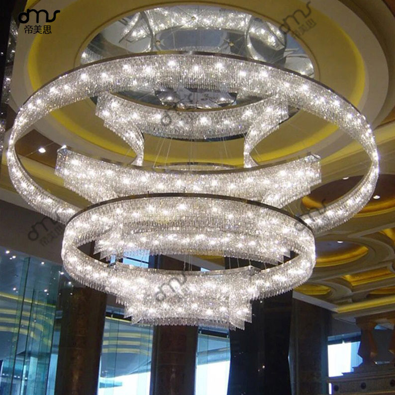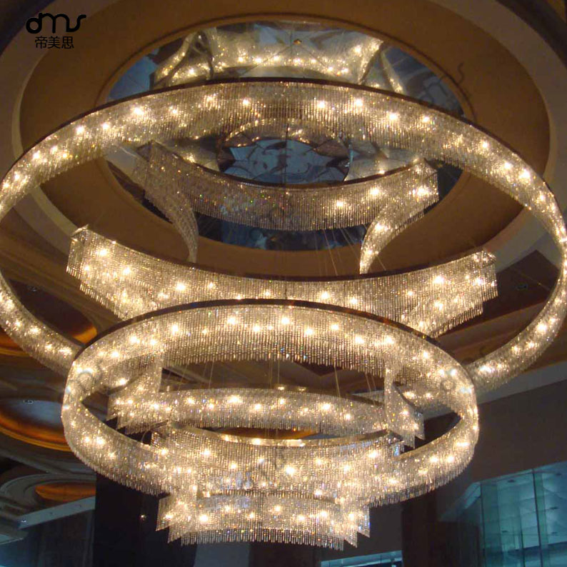 后现代圆环圈组合玻璃水晶大型吊灯