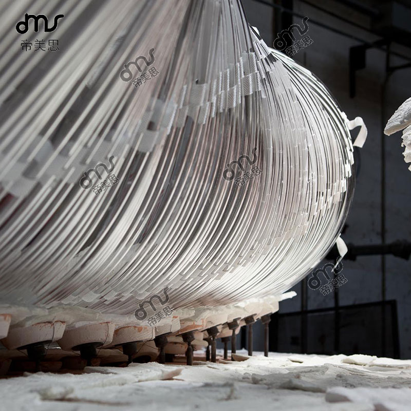 后现代创意弯管玻璃水晶官棒流苏大型吊灯