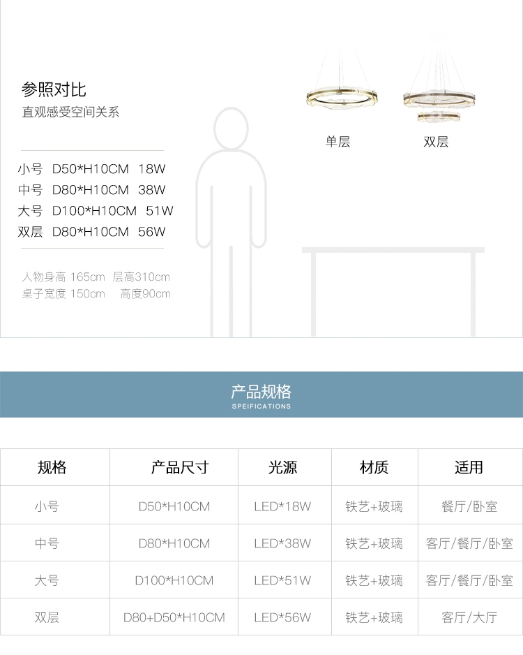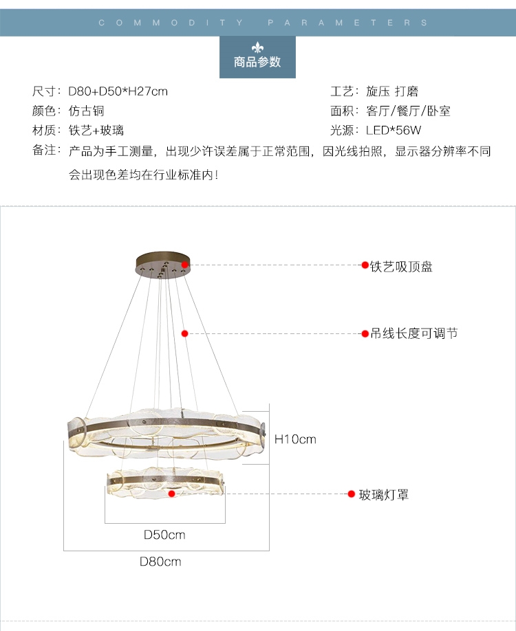 小吊灯直径50CM ,中吊灯直径80CM ,大吊灯直径100CM ,双层吊灯直径100CM